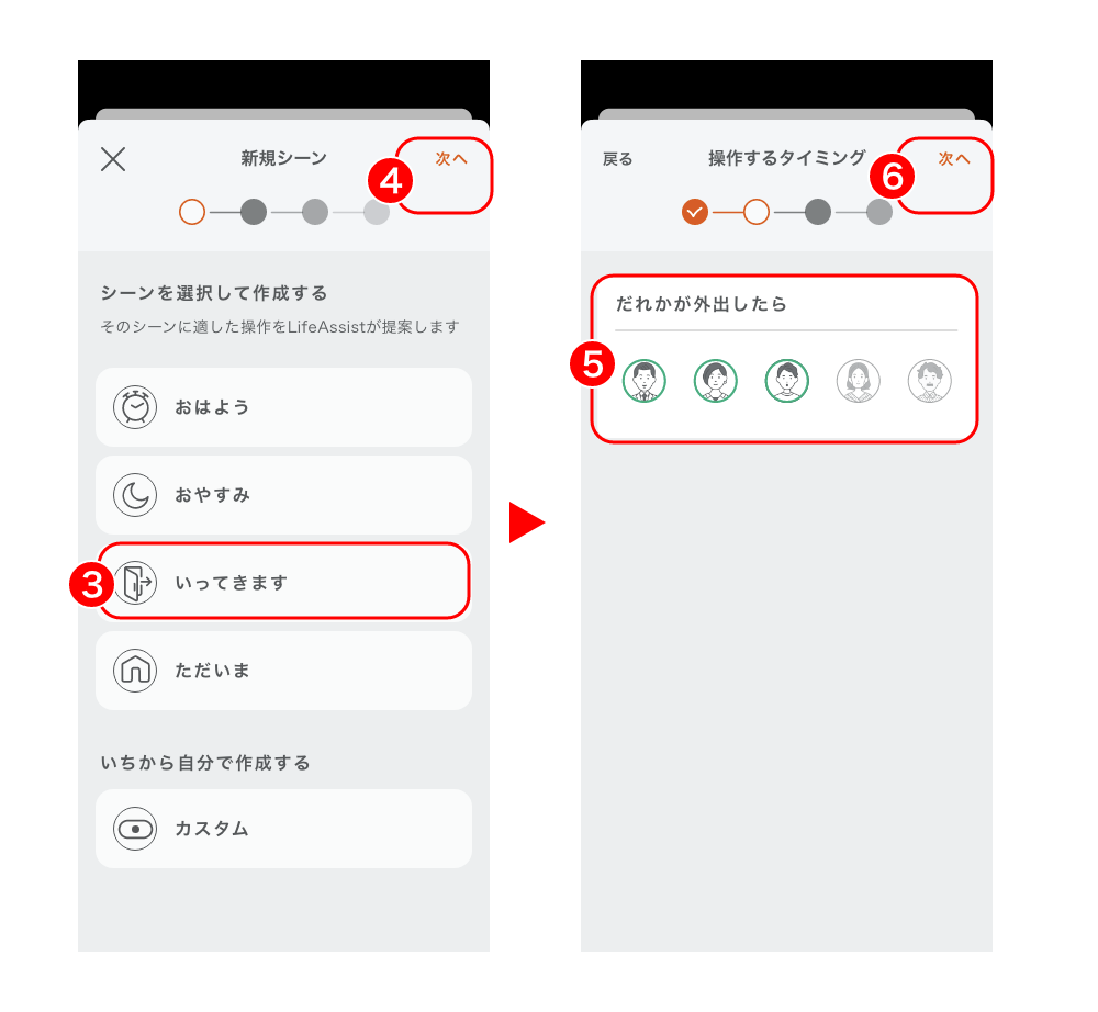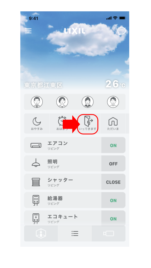 「いってきます」シーンを作成して操作する
