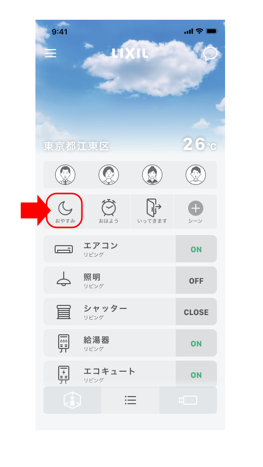 - 「おやすみ」シーンを選択します。