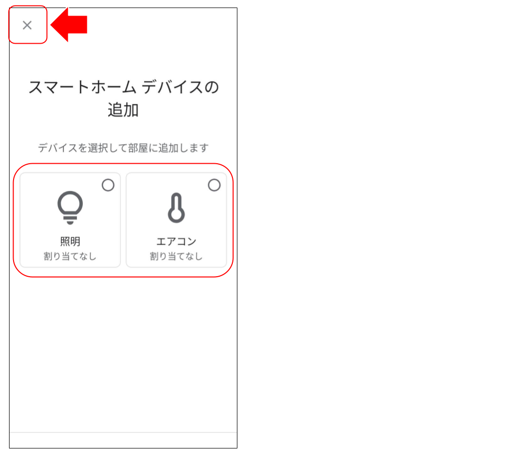 追加するデバイスをタップし、任意の部屋に設定後、左上の「×」をタップします。