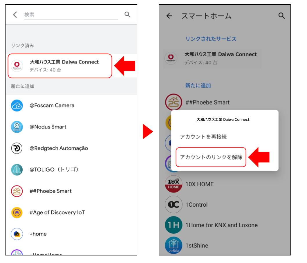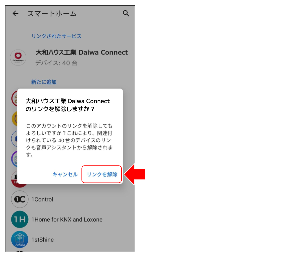 リンク済みのアプリから「Daiwa Connect」をタップし、「アカウントのリンクを解除」をタップします。