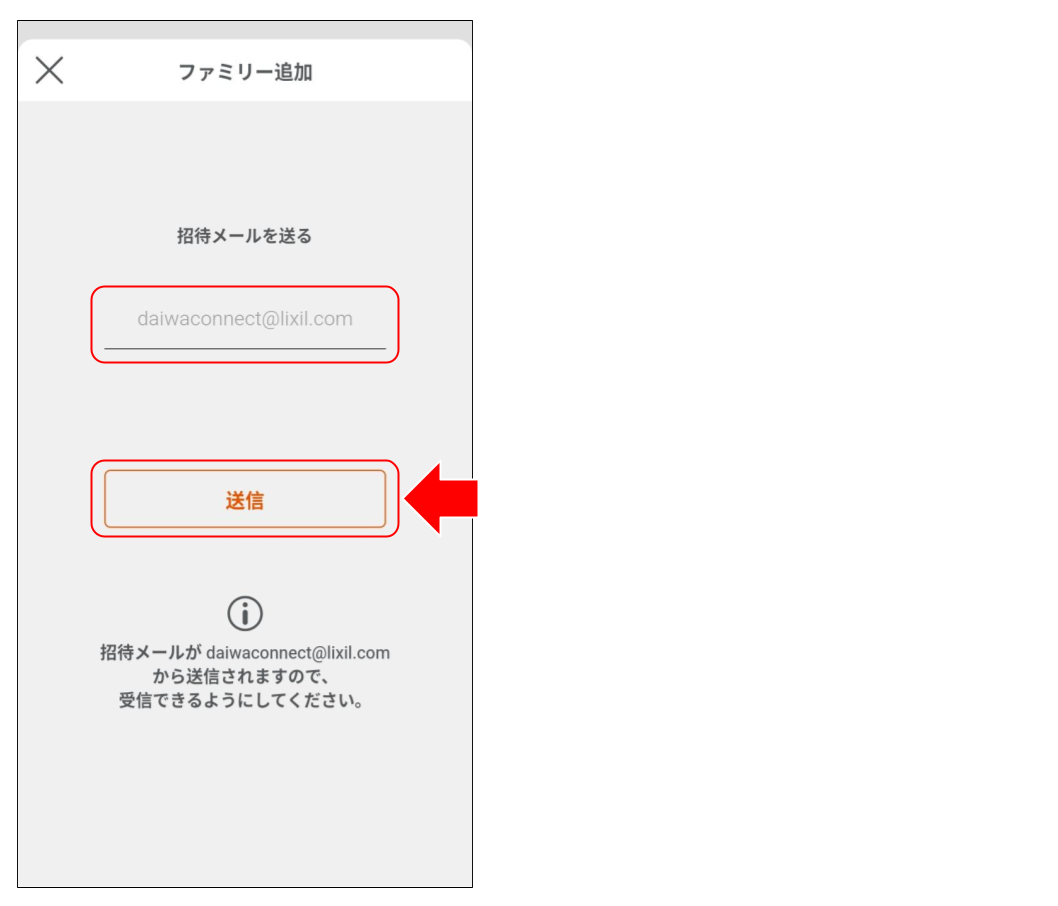 ※daiwaconnect@lixil.comからメールが届きます。招待メールが届かない場合、迷惑メールフォルダや受信ボックス以外の場所に振り分けられていないかご確認ください。