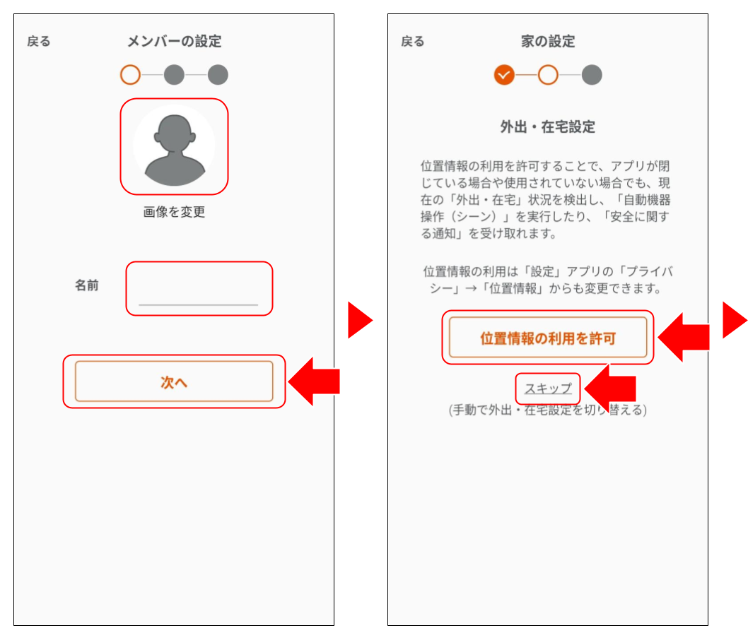 利用用途に合わせて、「位置情報の利用を許可」か「スキップ」をタップします。(あとで変更できます。)
