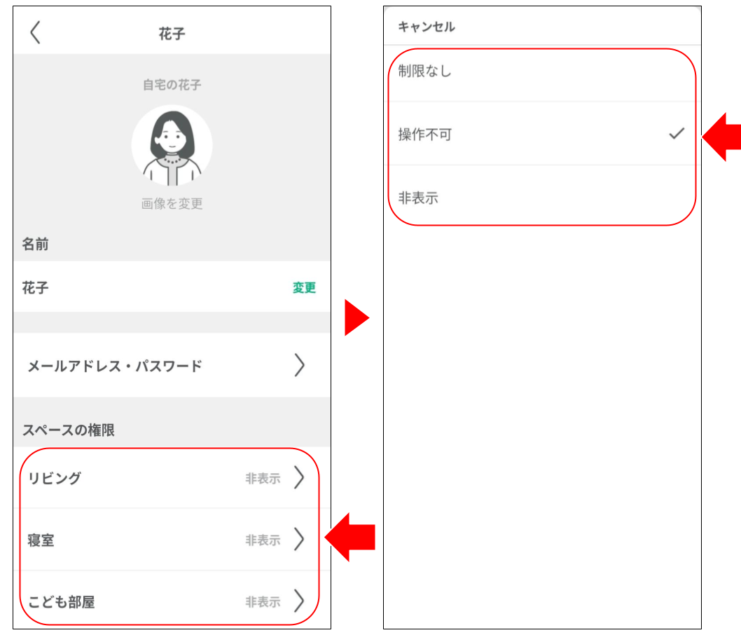 | 制限なし | メンバーは、そのスペースに設置されているすべての機器の状態確認・操作ができます。 |