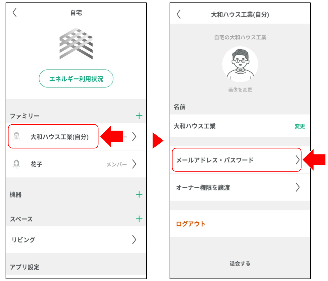 アカウントの変更(メールアドレス、パスワードの変更)