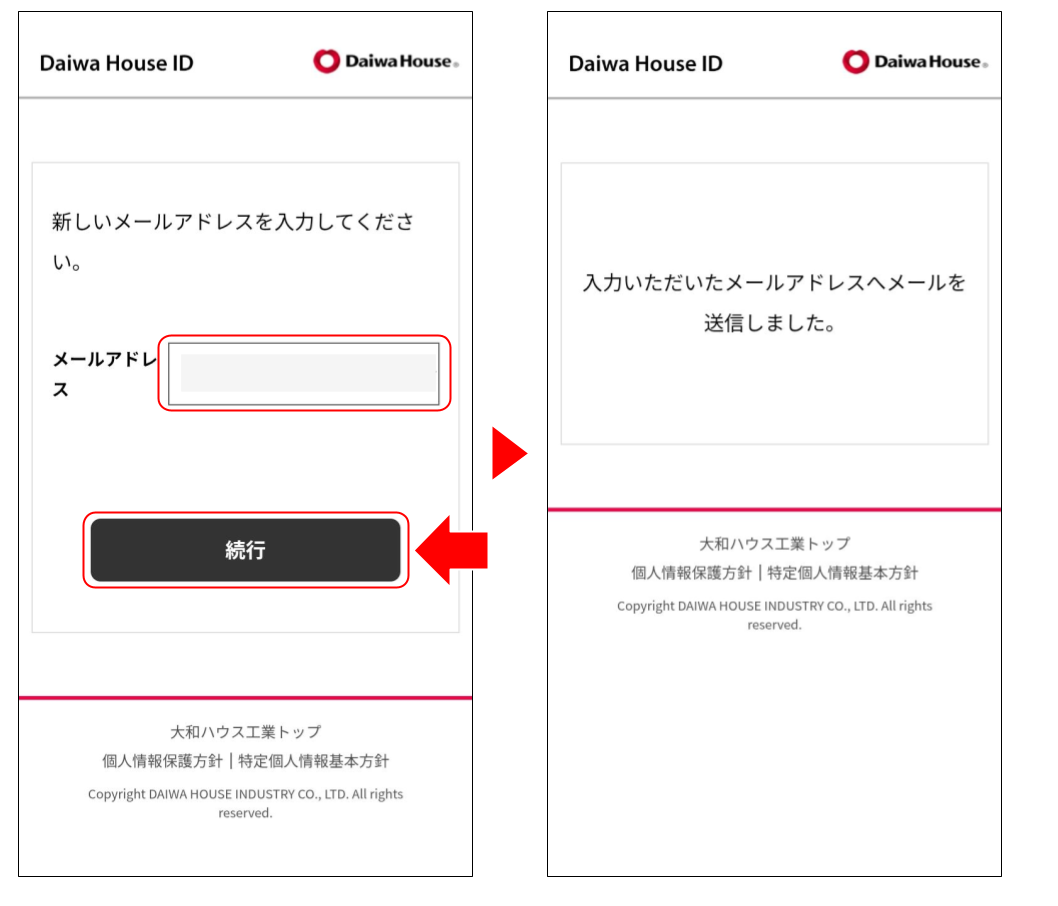 新しいメールアドレスを入力し、「続行」をタップします。