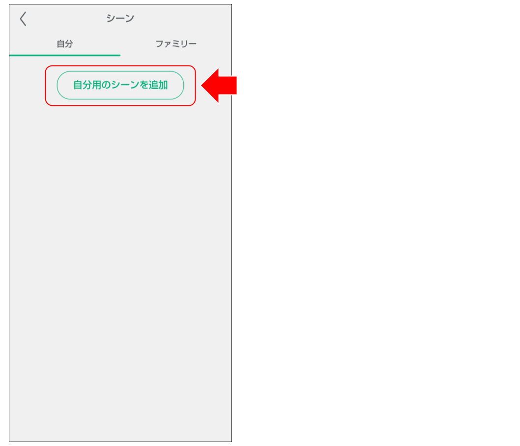 2.「自分」か「ファミリー」タブを選択し、「シーンを追加」をタップします。