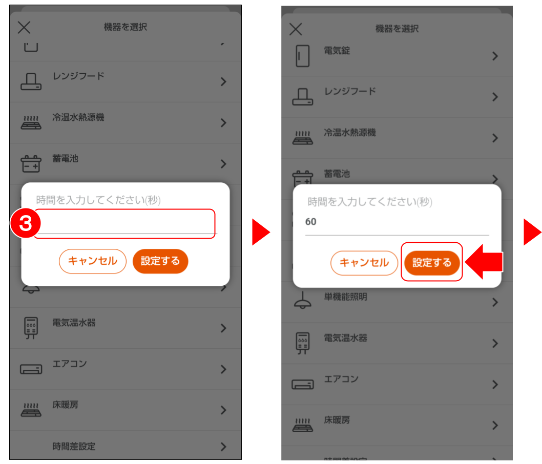 ③.時間「1~9999」秒を入力し、「設定する」をタップします。