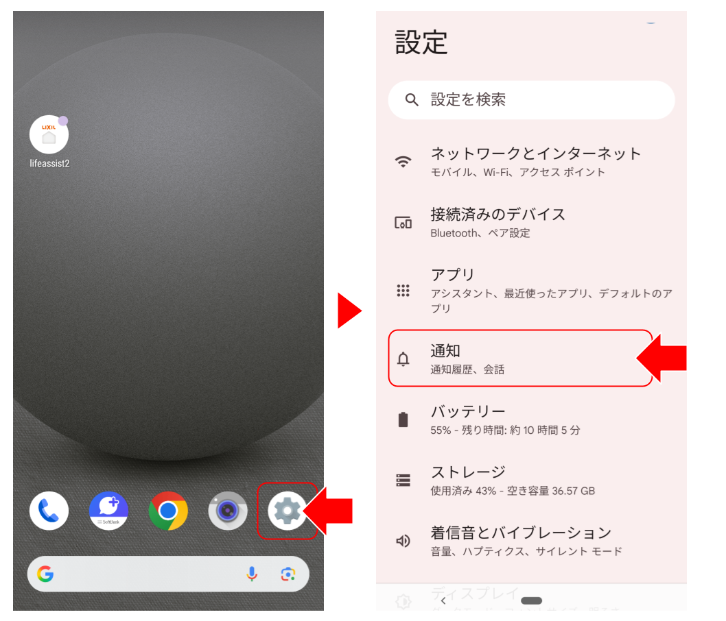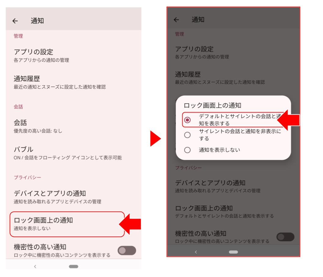 - 「ロック画面上の通知」をタップ → 「通知を表示しない」以外を選択してください。