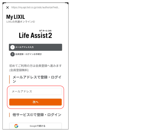 Life Assist2アプリを立ち上げ、ログインをタップします。