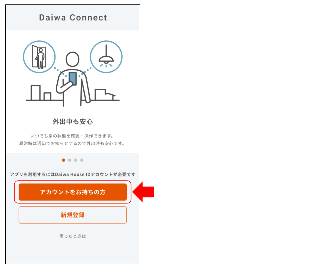 Daiwa Connectアプリを立ち上げ、「アカウントをお持ちの方」をタップします。