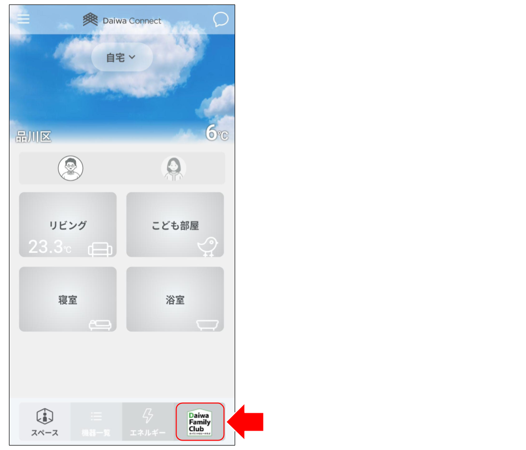 右下のタブ「Daiwa Family Club ダイワファミリークラブ」をタップします。