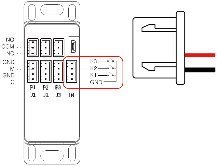 注)K1, K2, K3ピンはぞれぞれ I1, I2, I3ポートに対応しており、アプリ上での設定時に機器を I1, I2, I3ポートに割り振ります。