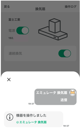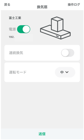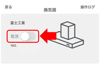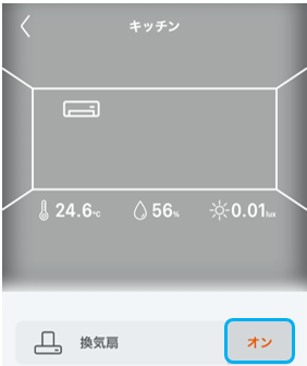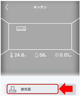 - 操作する換気扇をスペースまたは機器一覧からタップします。