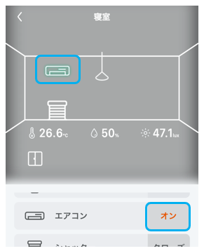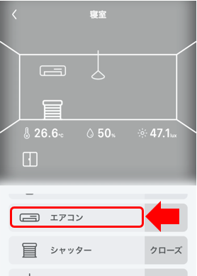 - 操作するエアコンをスペースまたは機器一覧からタップします。
