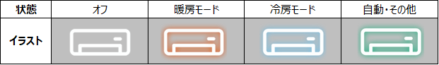 注1)Panasonic製JEM-A/HA端子接続の場合は電源のオン、オフしか出来ません。その他のエアコンの設定については各メーカー付属の説明書をご確認ください。