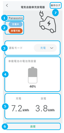 ③ | 運転モード | 充放電器の動作を選択できます。※詳細はこちら(次頁リンク) |