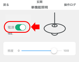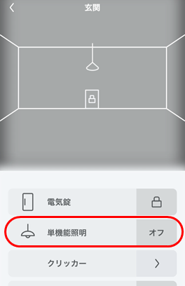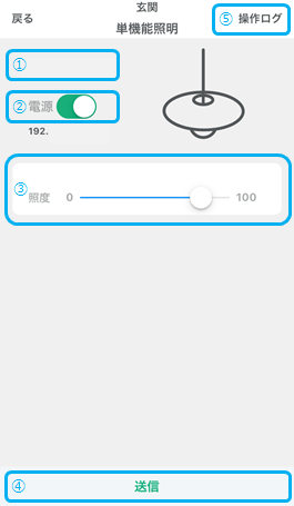 単機能照明(ECHONET Lite)の操作画面