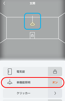 1.操作する単機能照明をスペースまたは機器一覧からタップします。