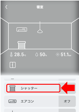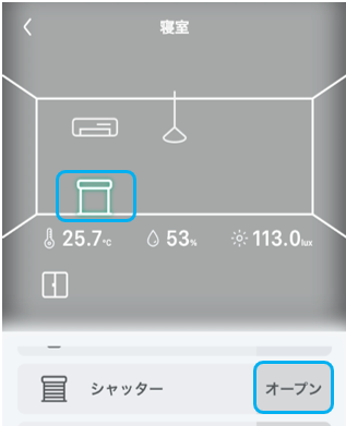 - 操作するシャッターをスペースまたは機器一覧からタップします。
