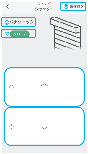 電動シャッター(Panasonic製JEM-A/HA端子接続)の操作画面