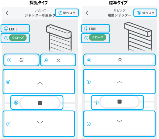 ② | 状態 | シャッターの状態(オープン/クローズ/採風)を表示します |