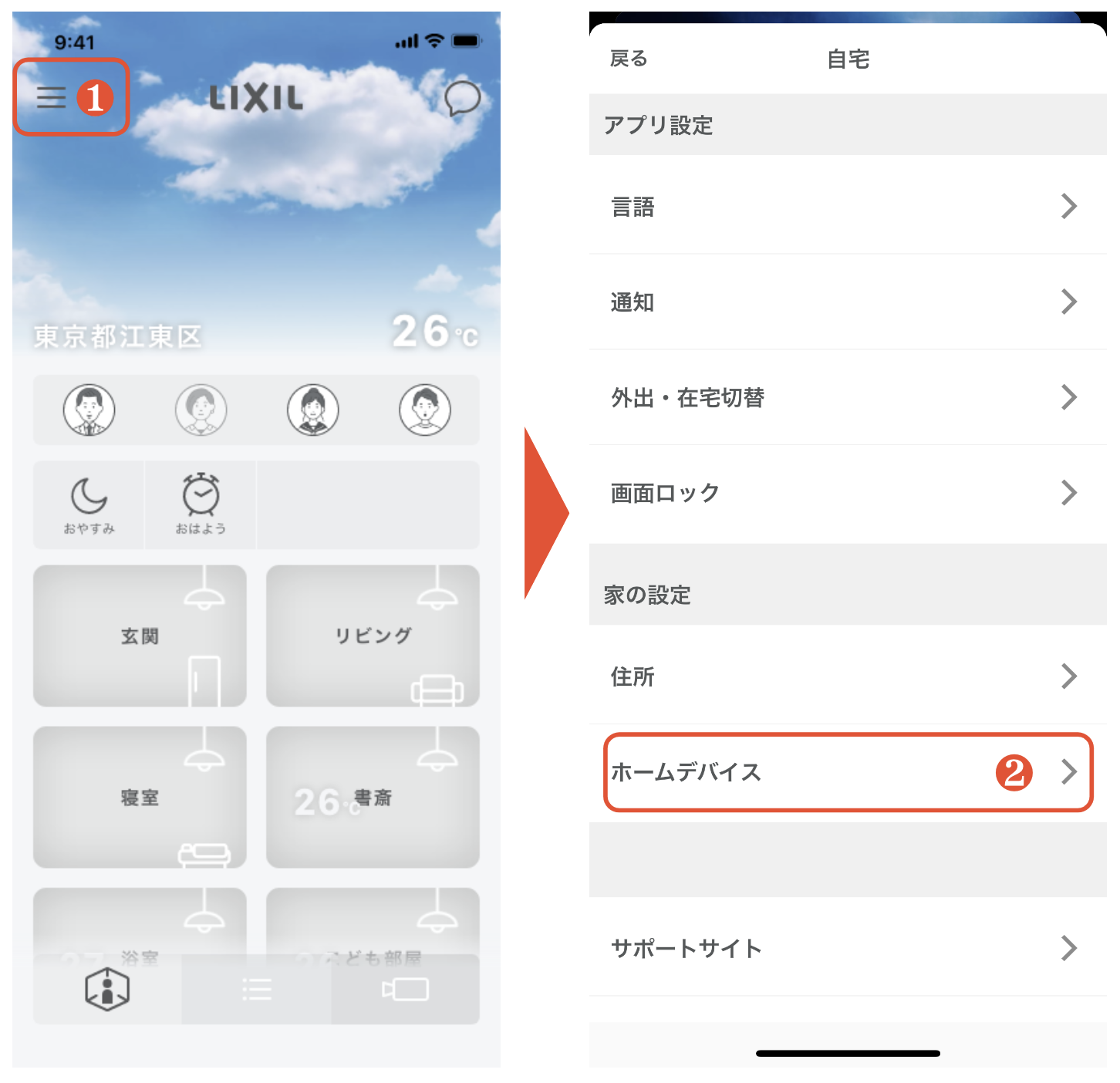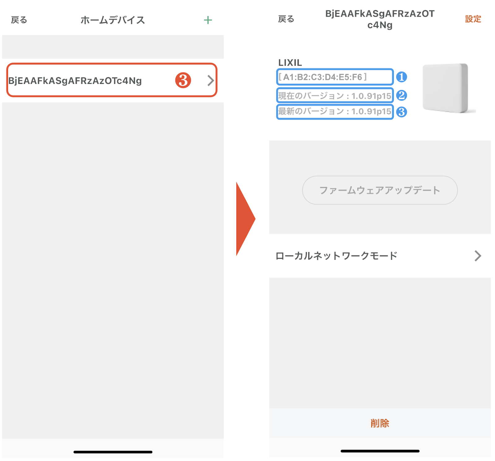 ホームデバイスの情報を確認する 左上にあるハンバーガーメニューから設定を開きます。下にスクロールをし、「ホームデバイス」をタップします。 表示されているホームデバイスをタップします。 ①Macアドレスネットワーク機器の固有の識別番号②現在のバージョン現在のホームデバイスのバージョン※最新のバージョンよりも低いバージョンの時に「ファームウェアアップデート」の選択ができるようになります。③最新のバージョン現在公開されている最新のホームデバイスのバージョン この記事は役に立ちましたか? はい いいえ フィードバックのご協力をお願いいたします。 問題を解決するのに十分な情報がなかった 分かりづらい・読みづらい内容が含まれている 商品(Life Assist2)の機能や使い勝手が悪い その他 個人情報の記入はご遠慮ください。質問や要望への返答をご希望の場合は、お問い合わせフォームをご利用ください。 フィードバックを送信 フィードバックありがとうございます。