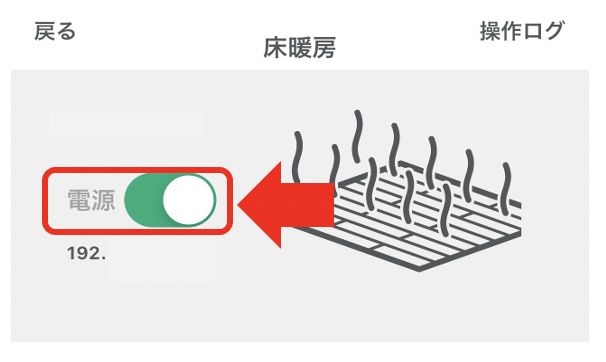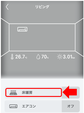 - 操作する床暖房を機器一覧、またはスペースからタップします。