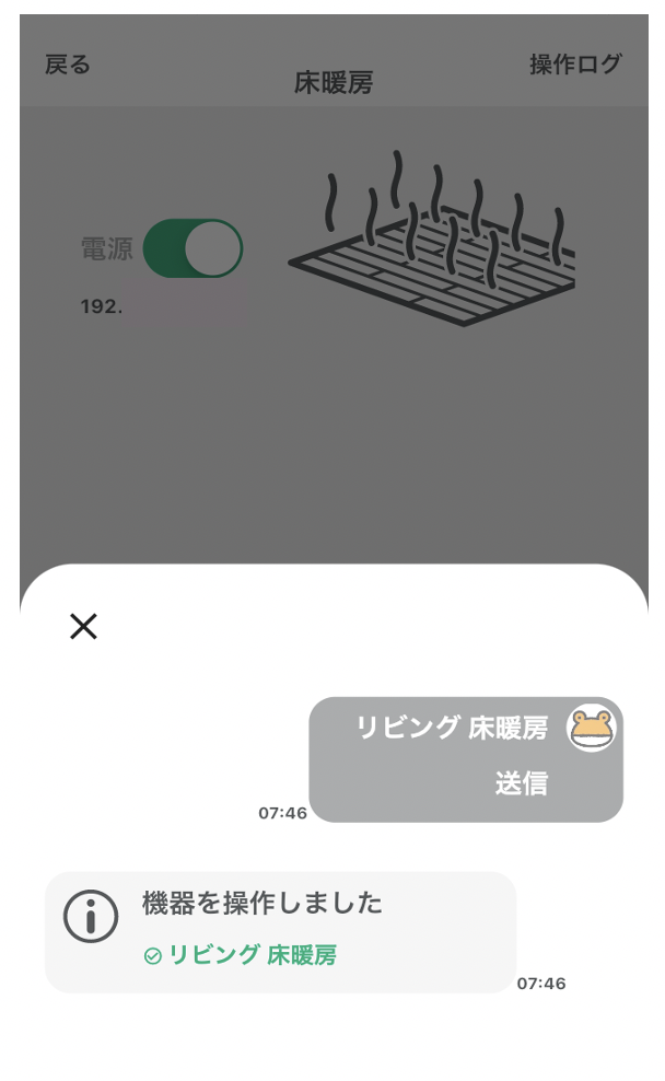 注)機器一覧かスペース上の簡易操作でもオン、オフの切り替えが可能です。 - 操作ログの確認