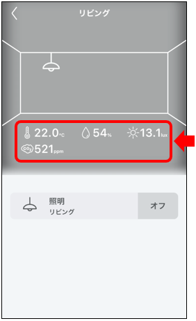 3)スペース内に記載された温度・湿度・照度・CO2濃度の数値が表示されている箇所をタップしてください。