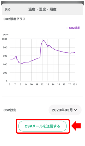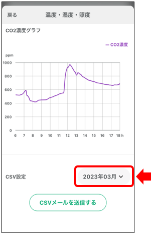 4)下にスクロールし温度・湿度・照度・CO2濃度のグラフの下の年月をタップしてください。